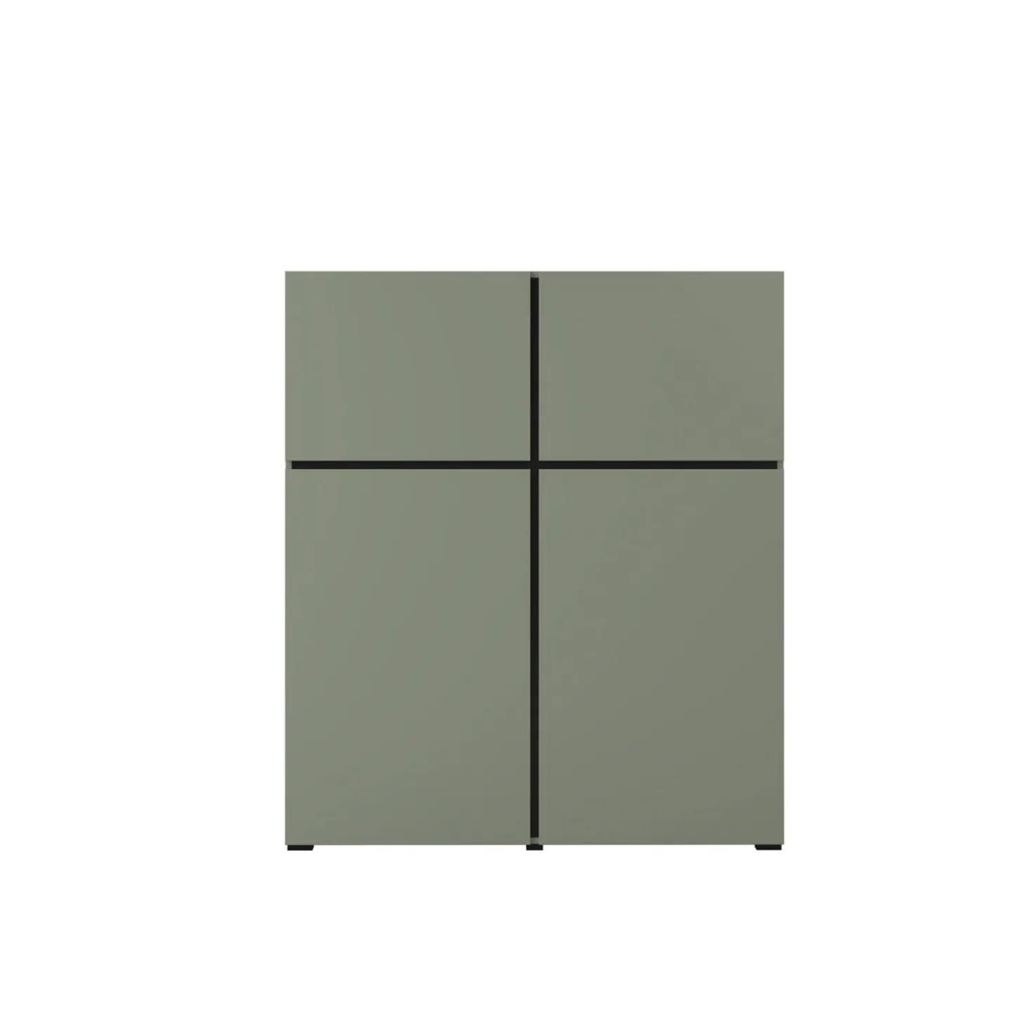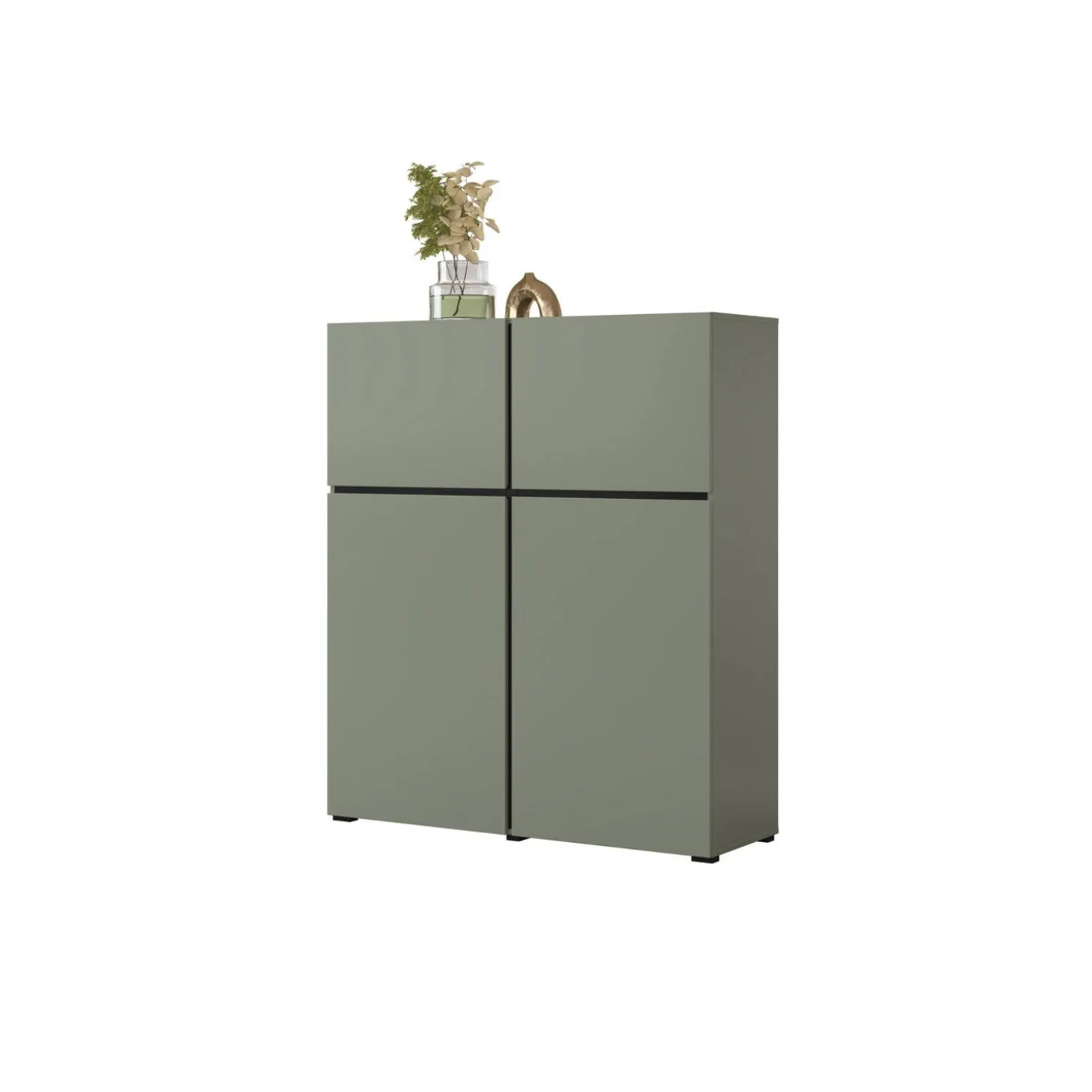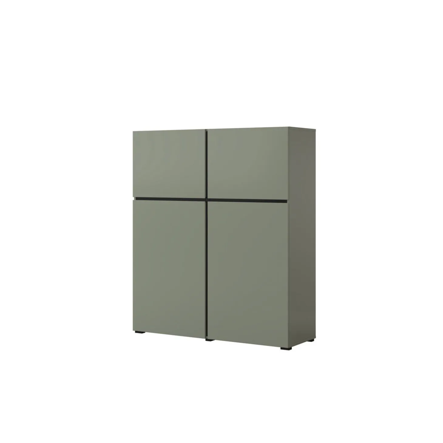 De opbergkast Crotone heeft een strak en modern ontwerp met een greeploos front en een rustige, symmetrische indeling. De vier deuren zorgen voor overzichtelijke opbergruimte, terwijl het minimalistische design zorgt voor een nette en tijdloze uitstraling.
