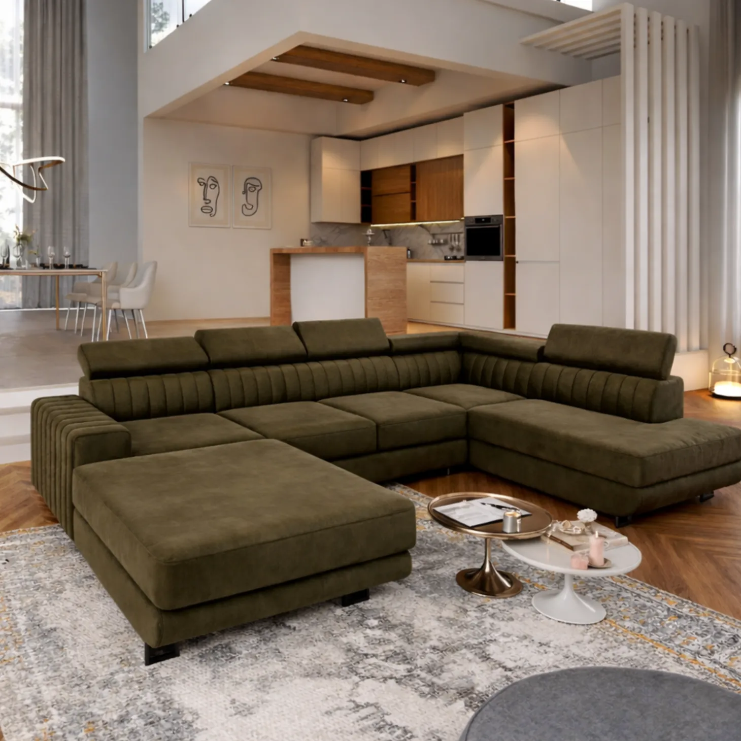 OP=OP Slaapbank met opbergruimte Nero | U-bank Rechts | Suede Mosgroen