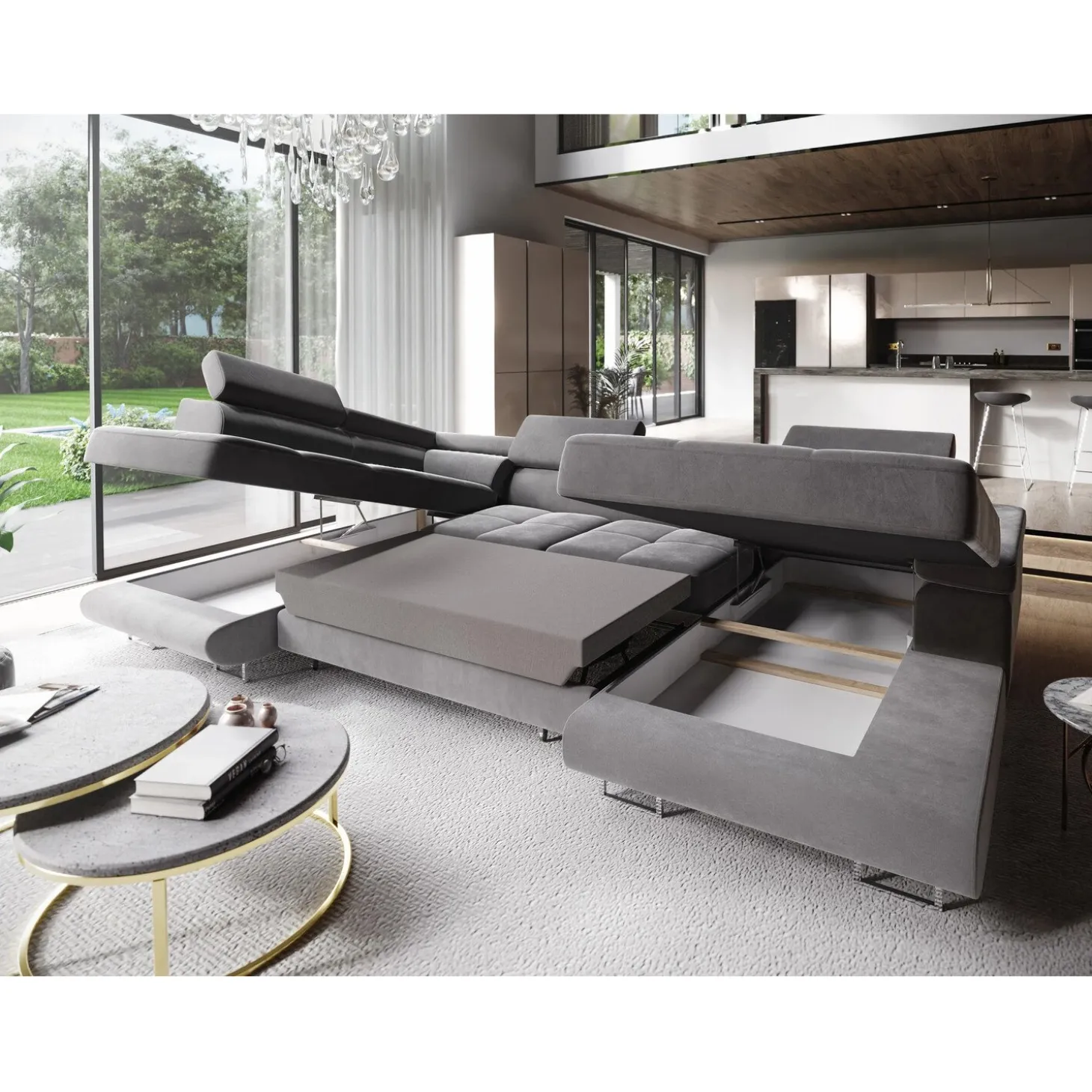 OP=OP Slaapbank met opbergruimte Sem | Rechts | U-bank XL – Velvet Grijs