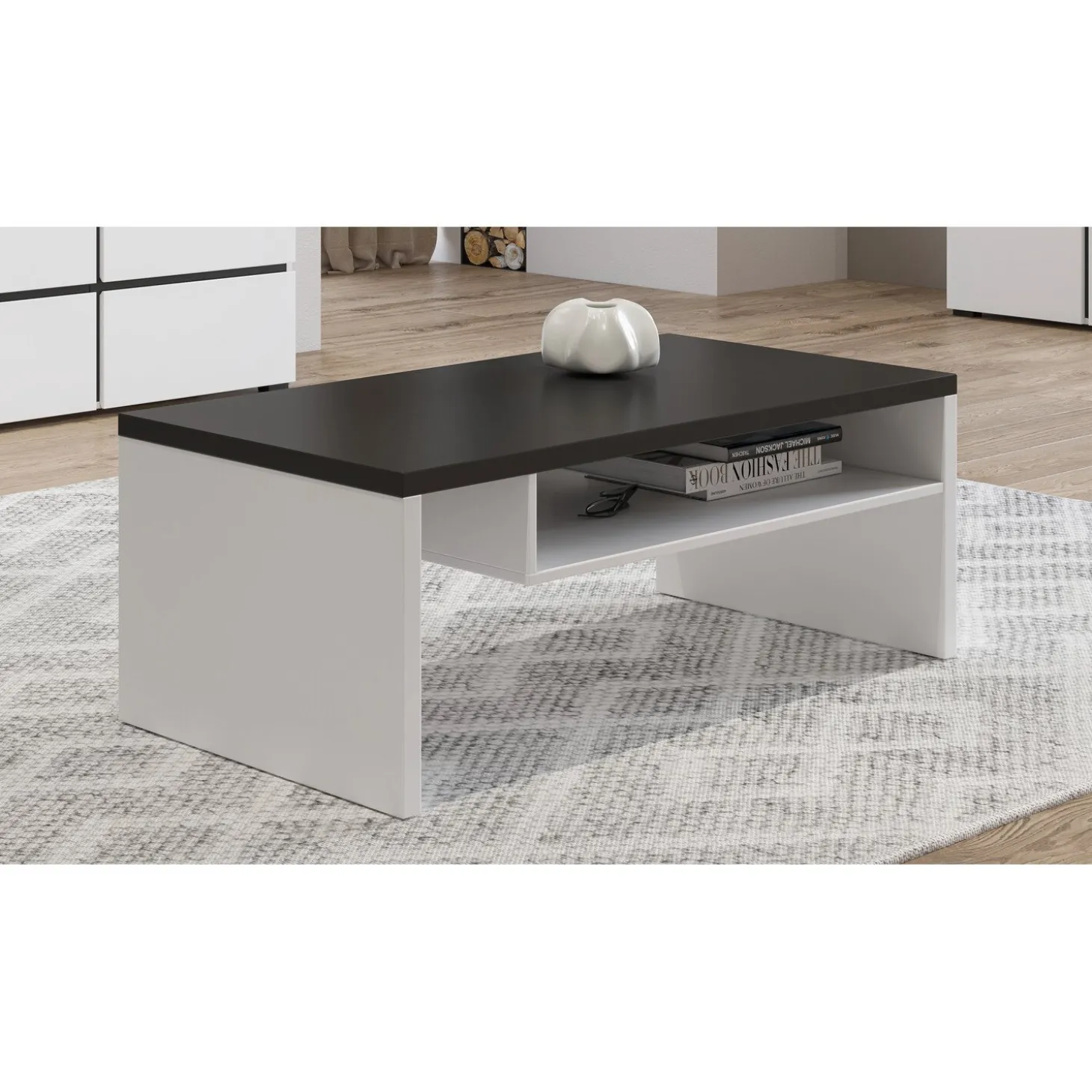 De Salontafel Crotone combineert strak, modern design met praktische opbergruimte. Het minimalistische silhouet wordt versterkt door het contrasterende tafelblad, wat zorgt voor een eigentijdse en stijlvolle uitstraling. Onder het blad bevindt zich een open vak, ideaal om tijdschriften, boeken of afstandsbedieningen netjes binnen handbereik op te bergen.