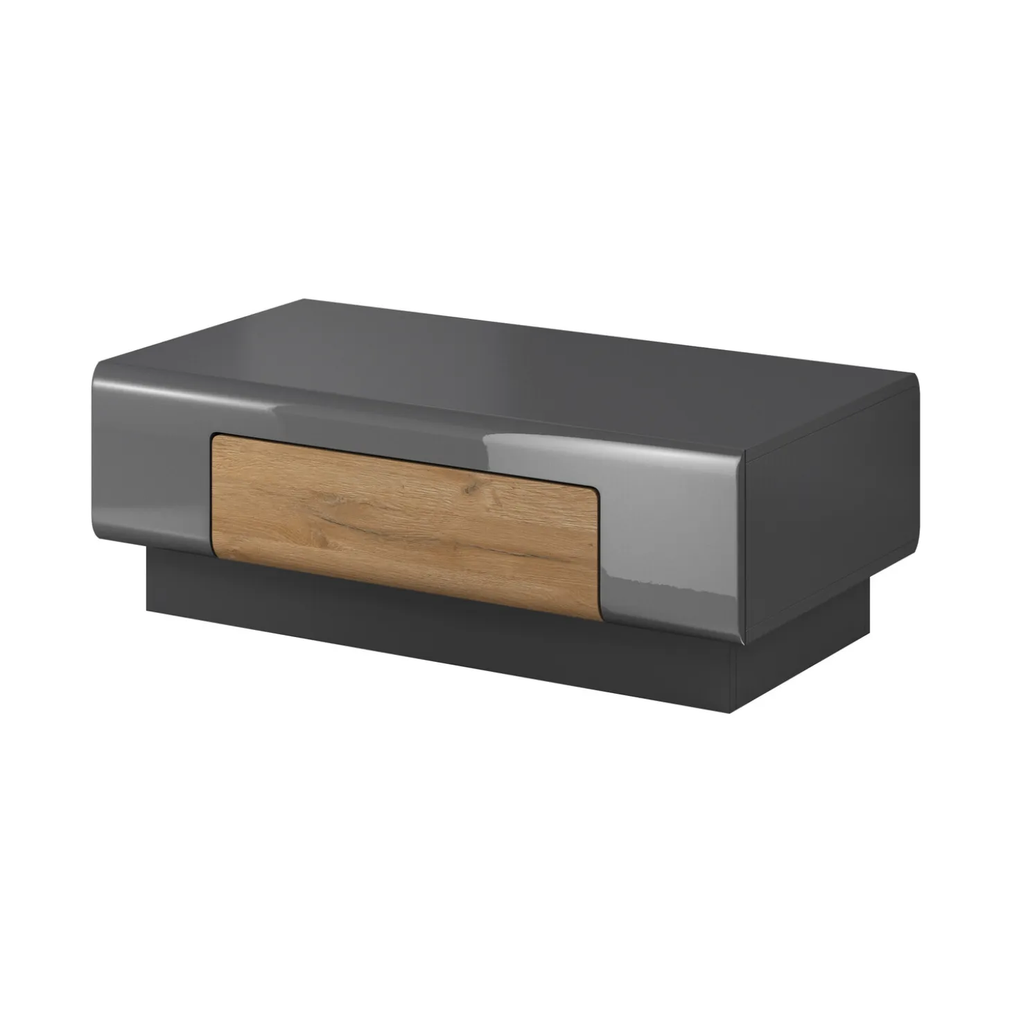 De Salontafel Torben straalt moderne elegantie uit met zijn strakke lijnen en bijzondere materiaalcombinatie. Het diepe grijs geeft de tafel een luxe uitstraling, terwijl het warme houtaccent voor een natuurlijke balans zorgt. Dankzij de ruime lade heb je altijd plek om spullen netjes uit het zicht op te bergen.