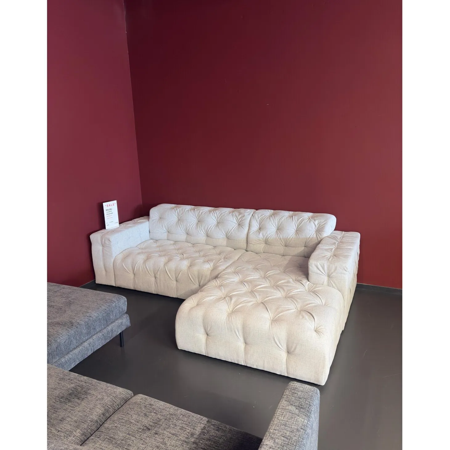 Showroommodel Loungebank Malibu Grijs – Rechts – Niet in originele verpakking – Kans op schade