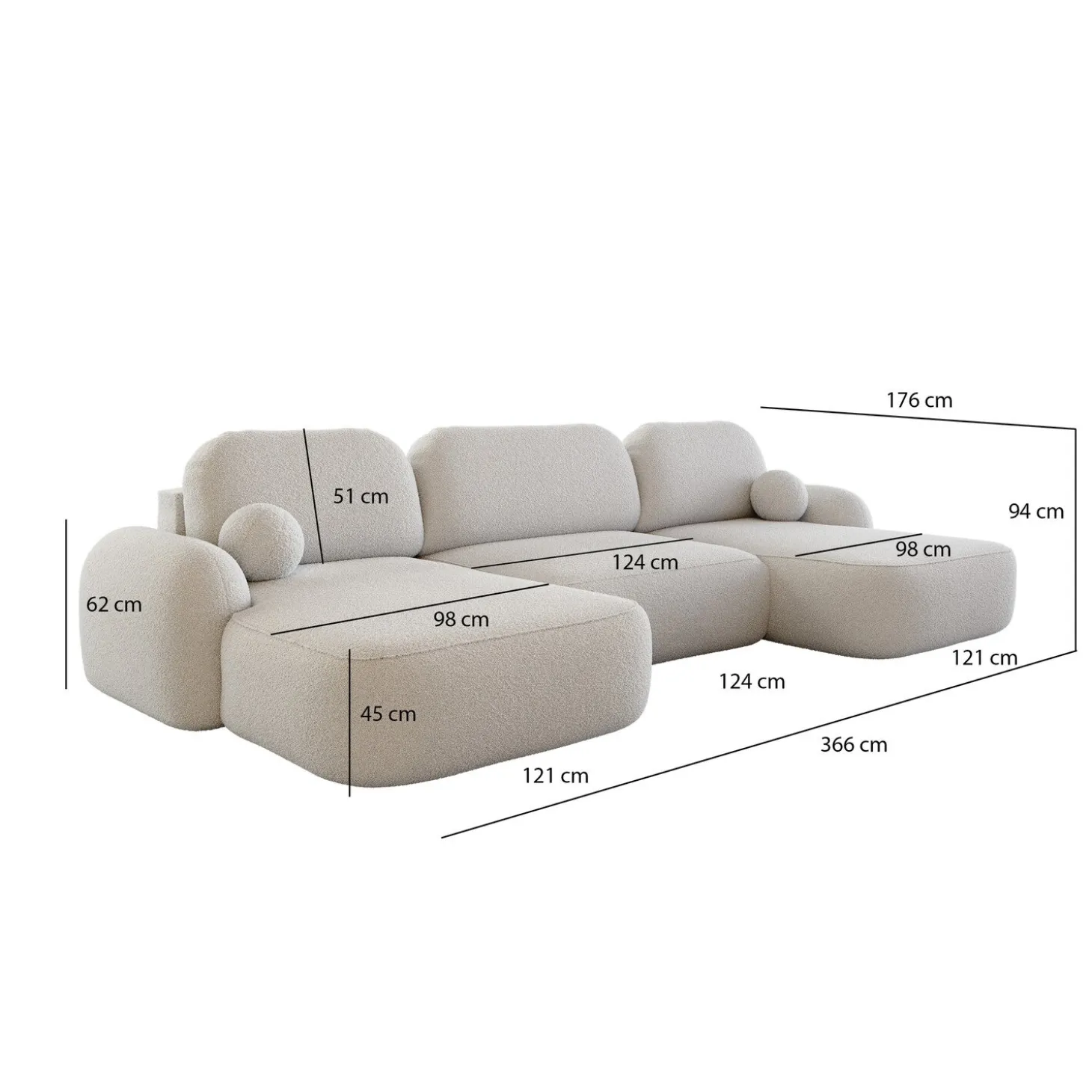 De U-bank Morris is volledig symmetrisch, waardoor hij aan beide zijden gelijk is. Je hoeft dus niet te kiezen tussen een linker- of rechterlounge – hij past altijd in jouw woonruimte.