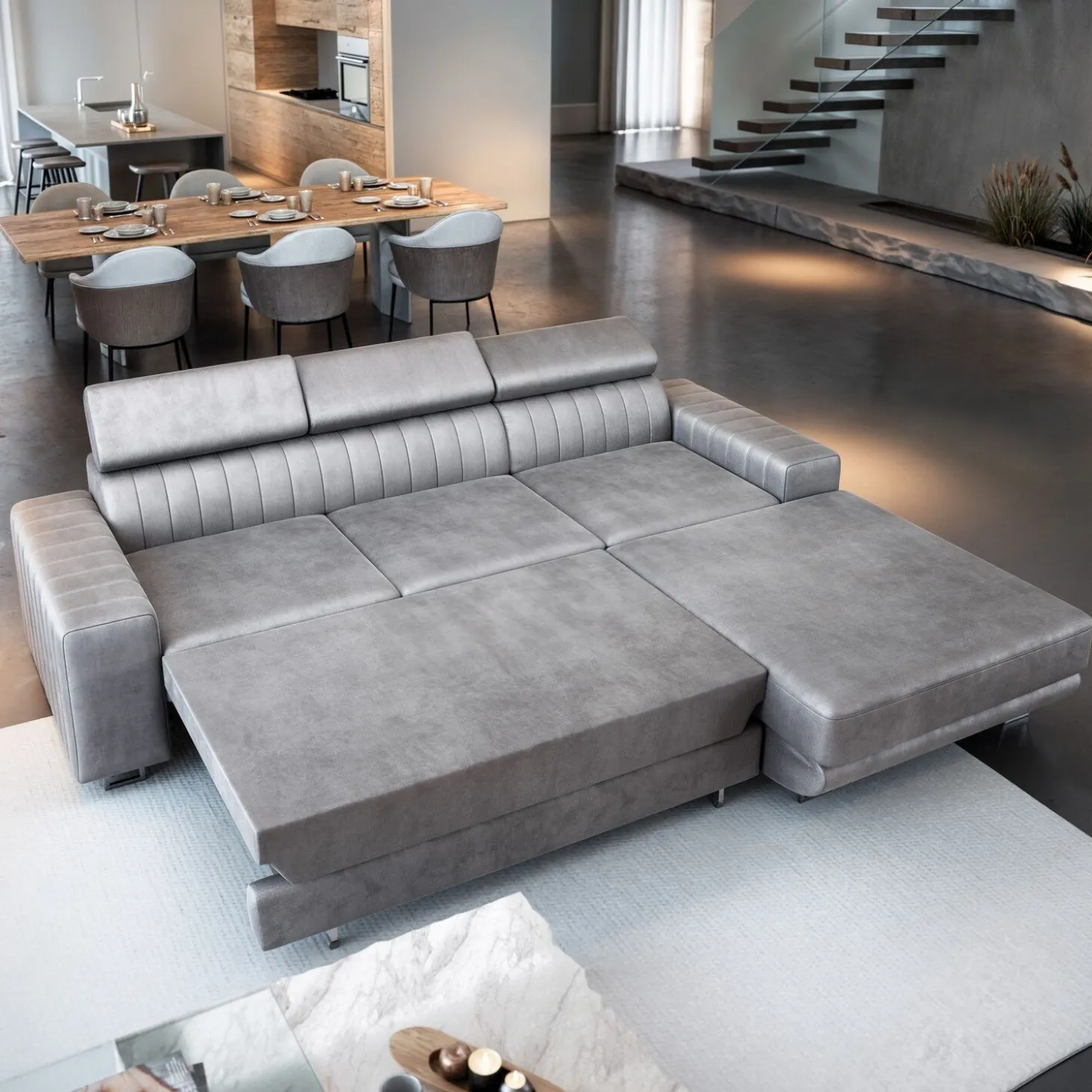 Slaapbank met opbergruimte Nero is een verfijnde en praktische aanwinst voor je woning. Het is een hoekbank die makkelijk omgevormd kan worden tot een comfortabele slaapplaats. Het opvallende ontwerp maakt hem aanpasbaar aan de specifieke eisen van jouw ruimte en de ingebouwde opbergvoorzieningen bieden bijvoorbeeld een plek voor je beddengoed.