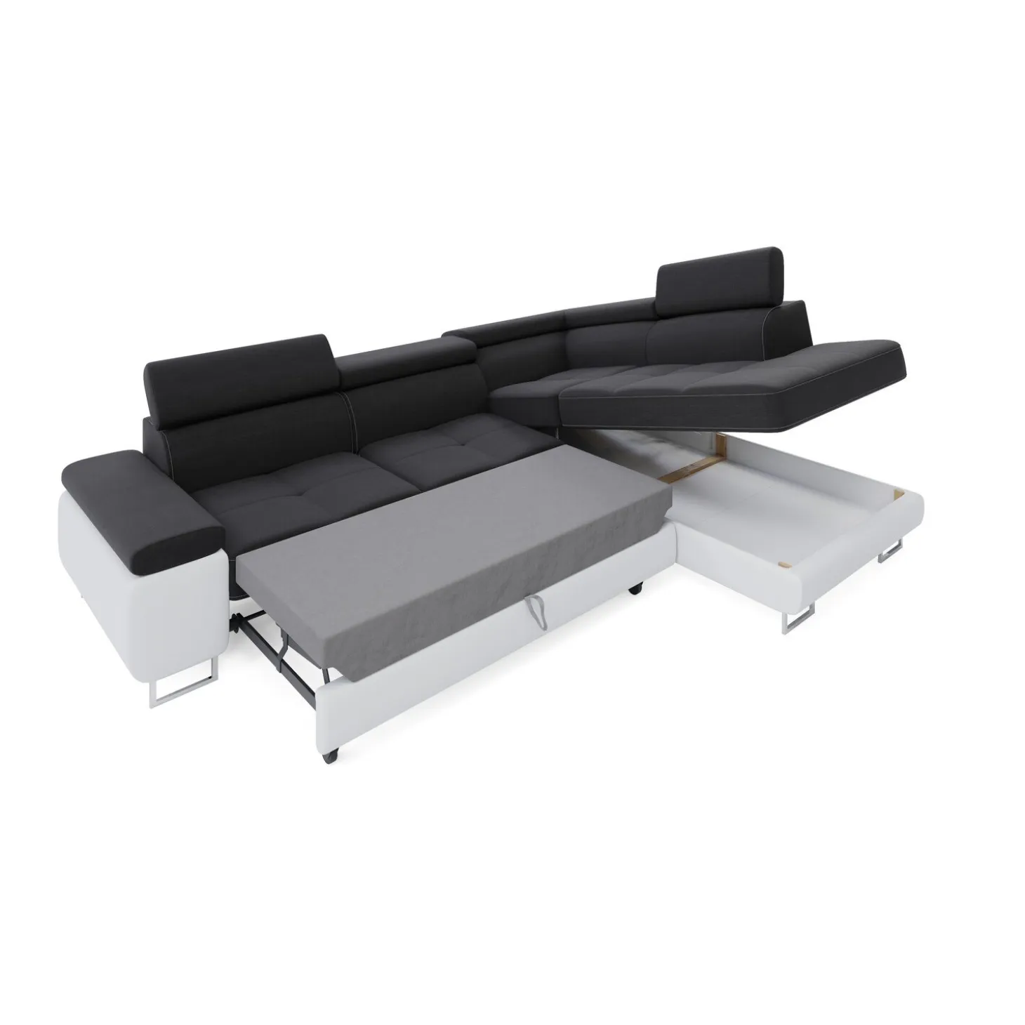 Slaapbank met opbergruimte Sem is een verfijnde en praktische toevoeging aan jouw interieur! Deze hoekbank kan eenvoudig worden omgevormd tot een comfortabele slaapplek. Dankzij zijn opvallende ontwerp is deze bank aan te passen aan de specifieke eisen van je ruimte. Met de ingebouwde opbergmogelijkheden kun je bijvoorbeeld je beddengoed netjes opbergen.