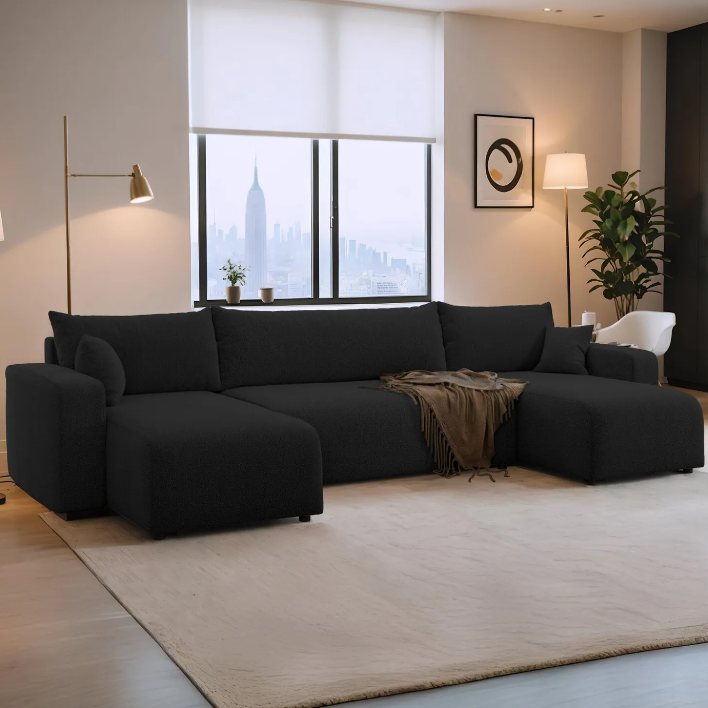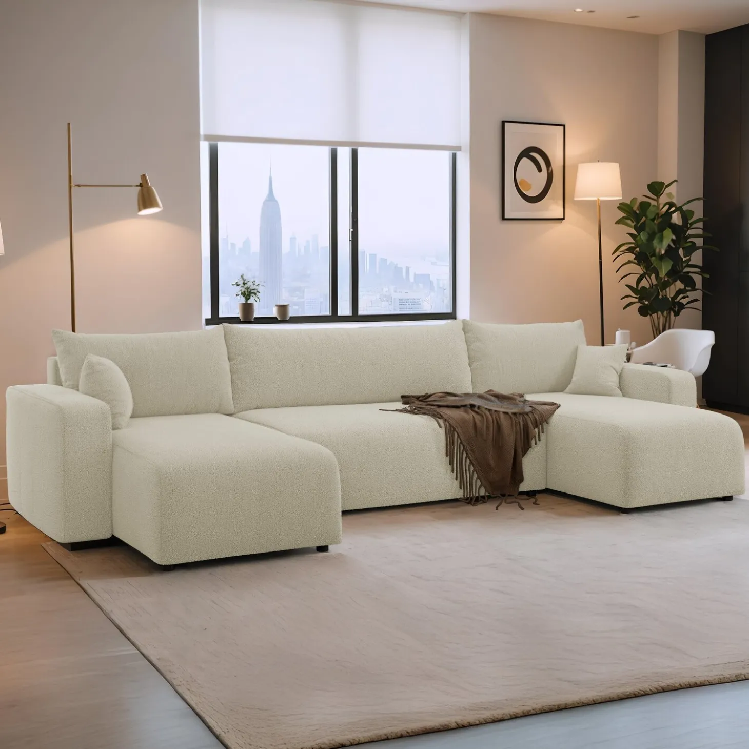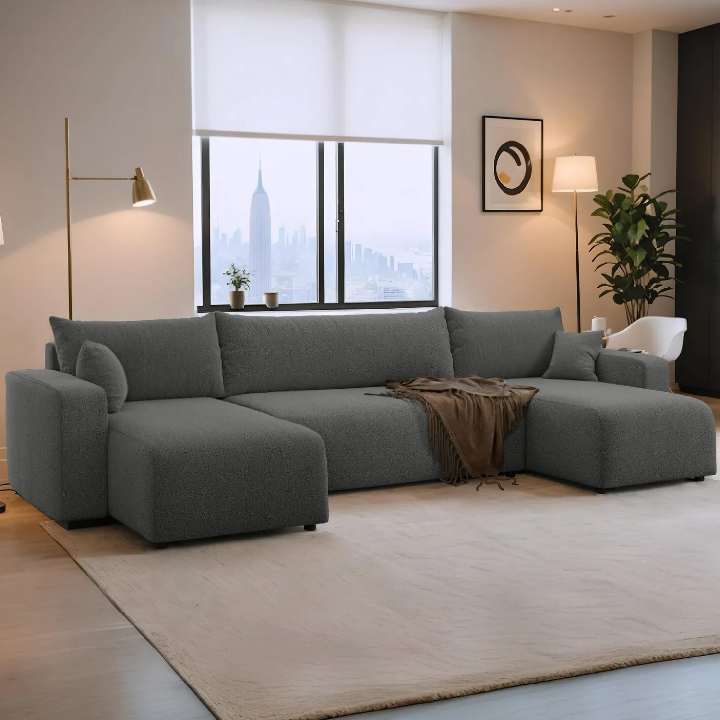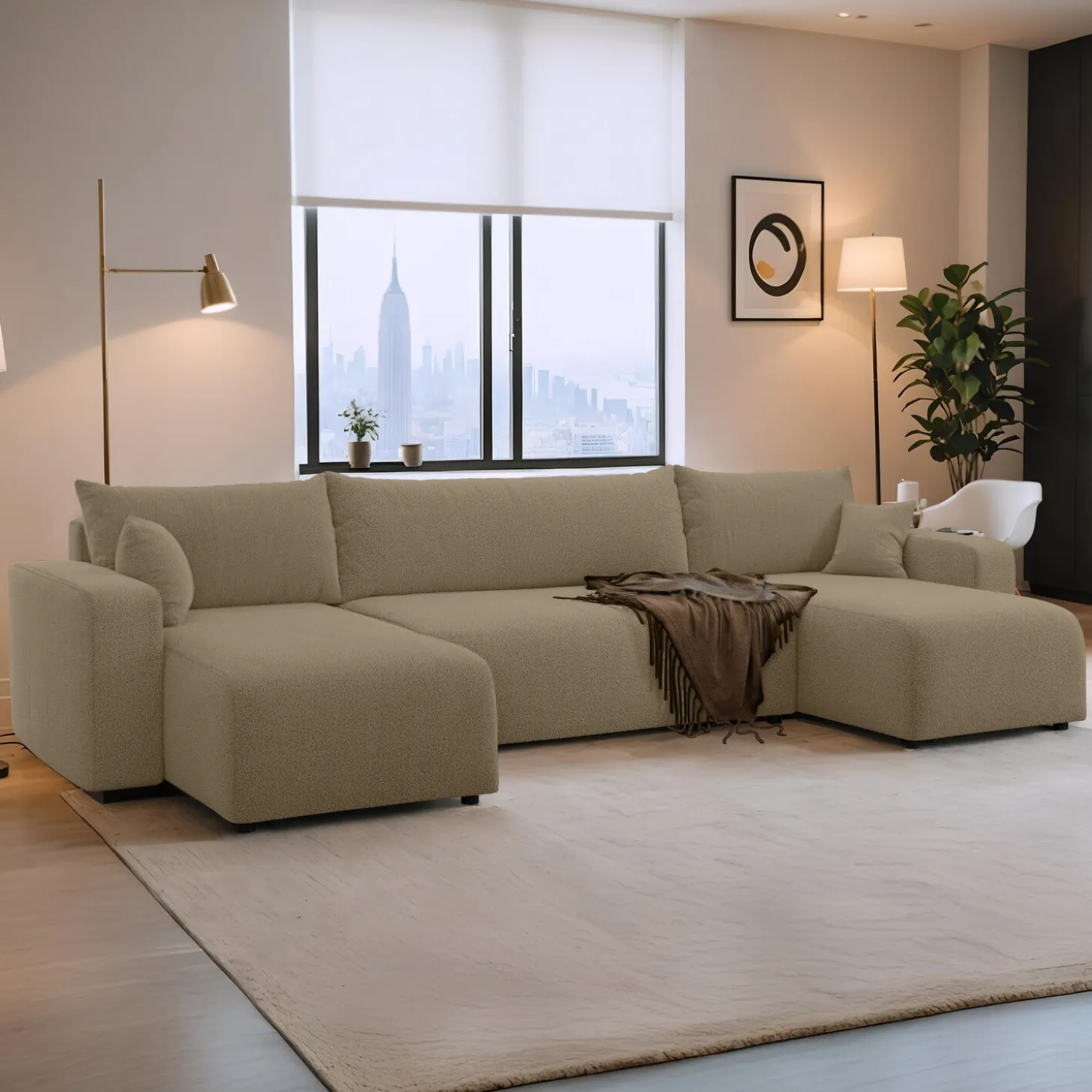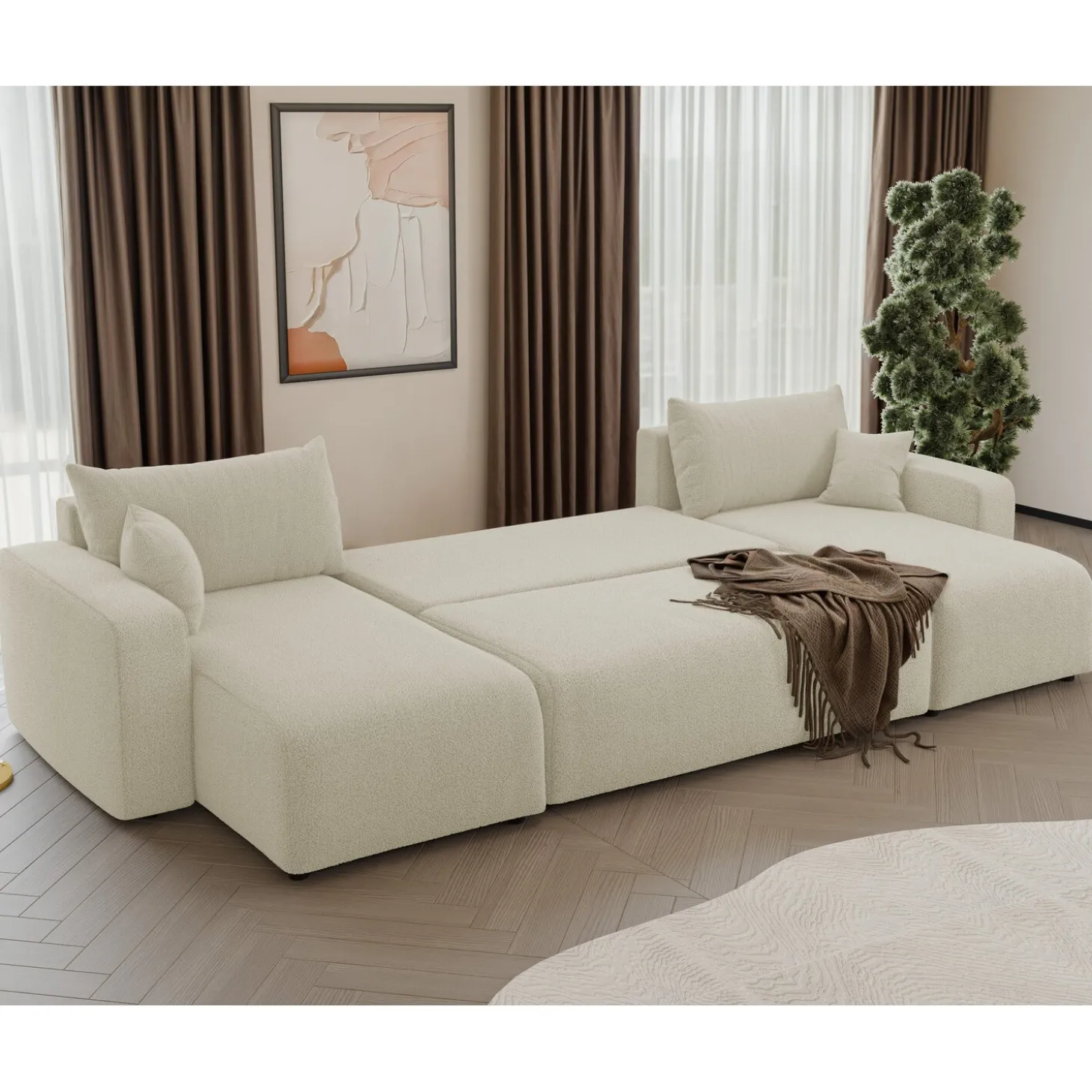 Creëer een knusse en slimme leefruimte met de Teddy stof Pim U‑bank. Zijn zachte teddy-stof en royale zitruimte maken hem perfect voor ontspanning, gasten en slimme opbergopties.