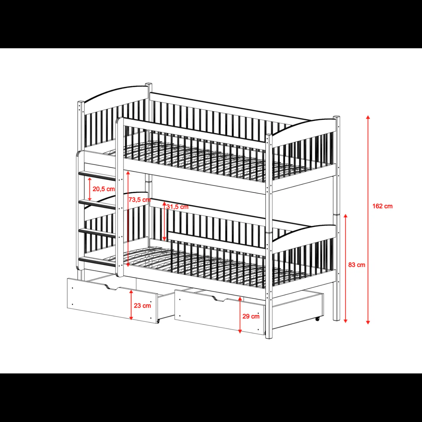 Dit bed voldoet aan de Europese veiligheidsnormen EN 747-1:2012+A1:2015 en PN-EN 1725:2001. De stevige constructie en veilige afwerking zorgen voor een stabiele en vertrouwde slaapomgeving voor dagelijks gebruik.