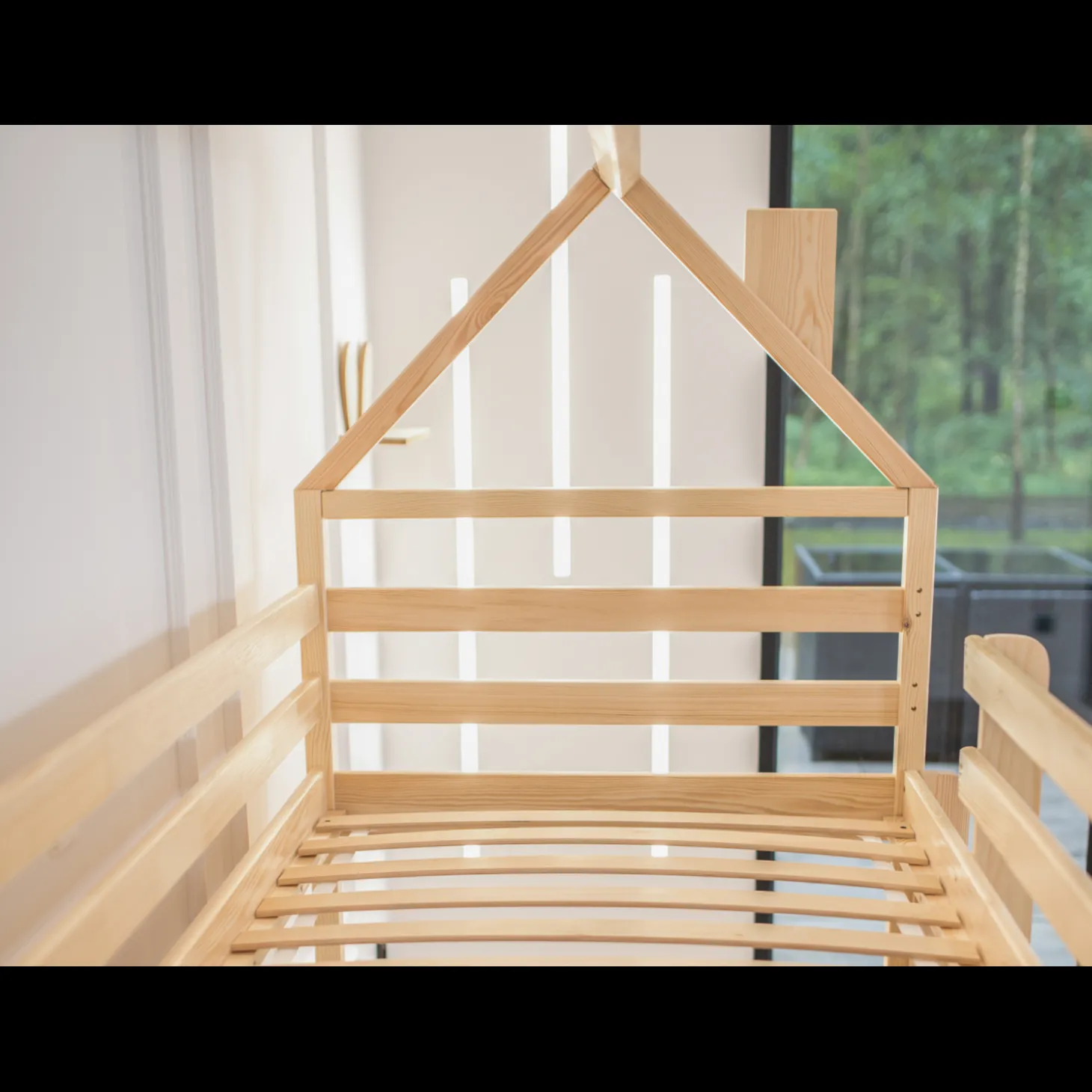 Het stapelbed Pleun combineert een speelse uitstraling met een praktisch ontwerp. Het bovenbed is voorzien van een huisvormig frame dat direct opvalt en zorgt voor een gezellige sfeer, terwijl de geïntegreerde glijbaan een speels element toevoegt aan de kamer. Onder het bed bevindt zich een extra slaapgedeelte, waardoor het bed ideaal is voor meerdere kinderen of logees.