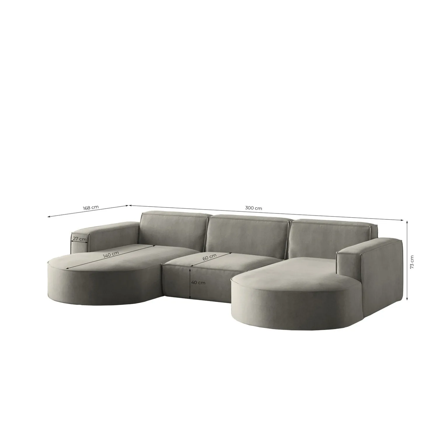 • Totale diepte loungegedeelte circa 168 cm