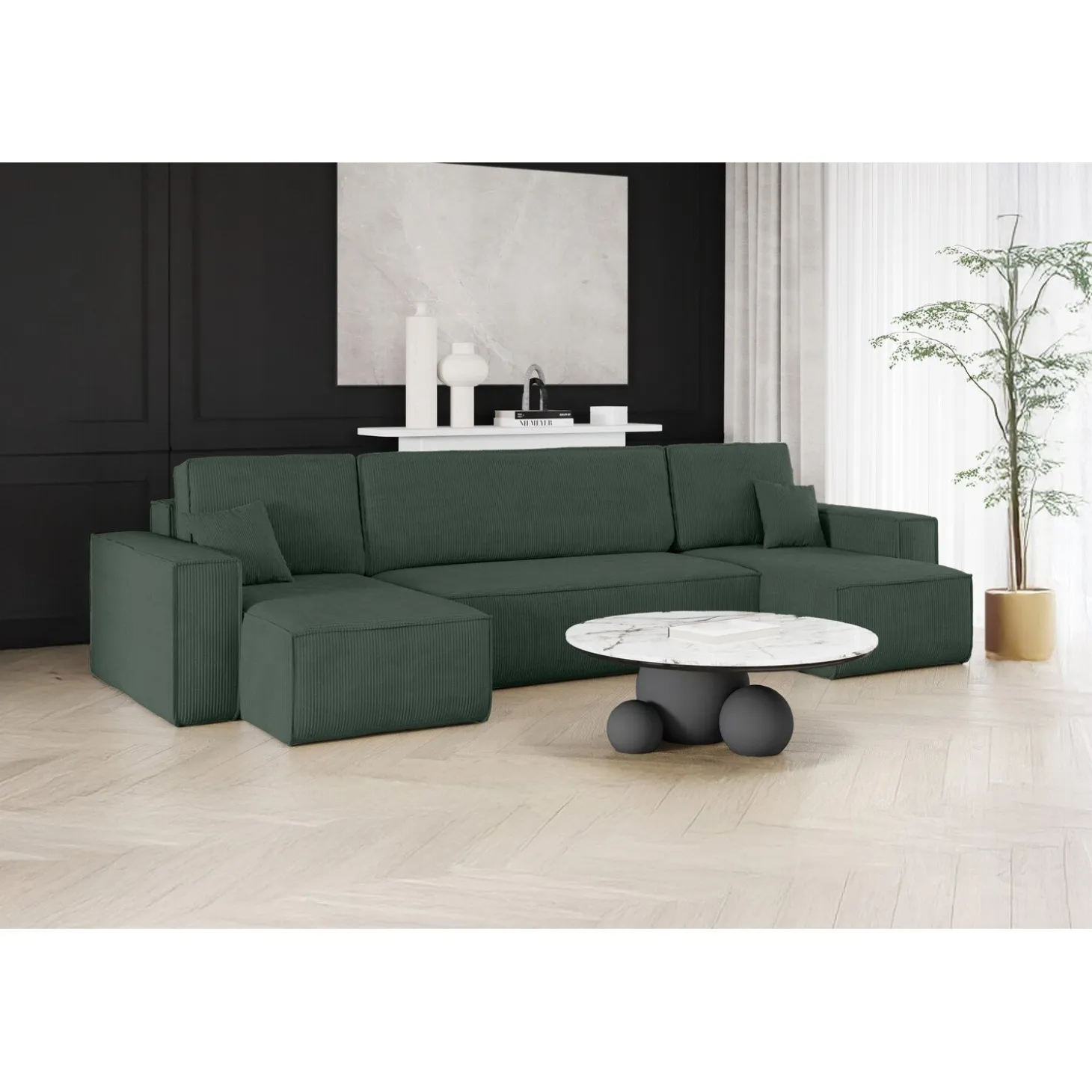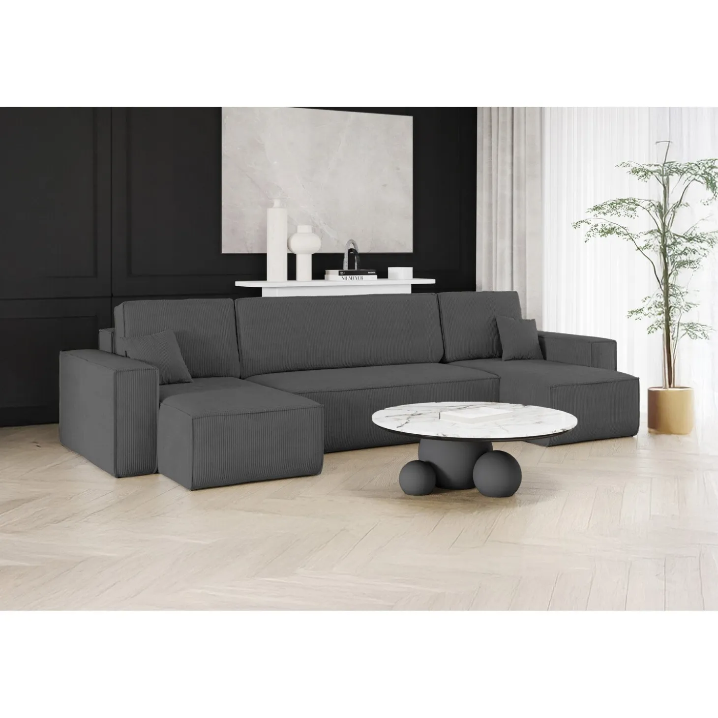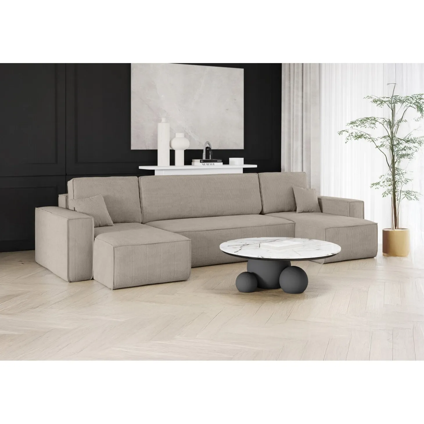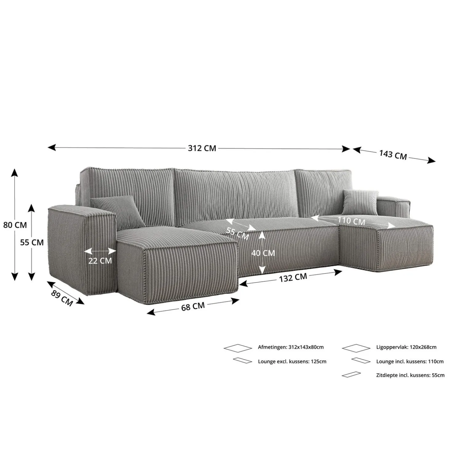 De U-bank Karlo is de perfecte keuze voor wie comfort, stijl en functionaliteit wil combineren. Overdag biedt de royale U-vormige opstelling volop zitruimte voor het hele gezin, terwijl je de bank ’s avonds eenvoudig omtovert tot een volwaardig bed. Ideaal voor logees of als slimme oplossing in woonruimtes waar je het maximale uit de ruimte wilt halen.