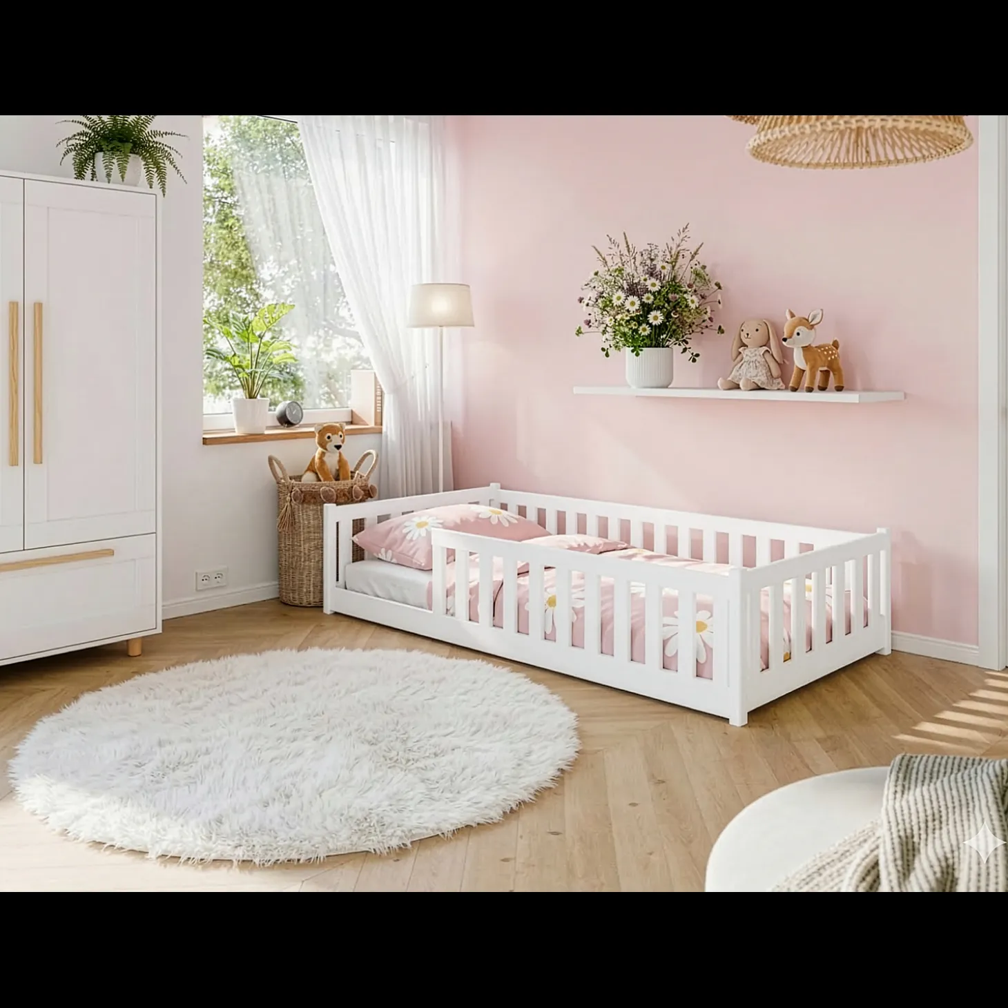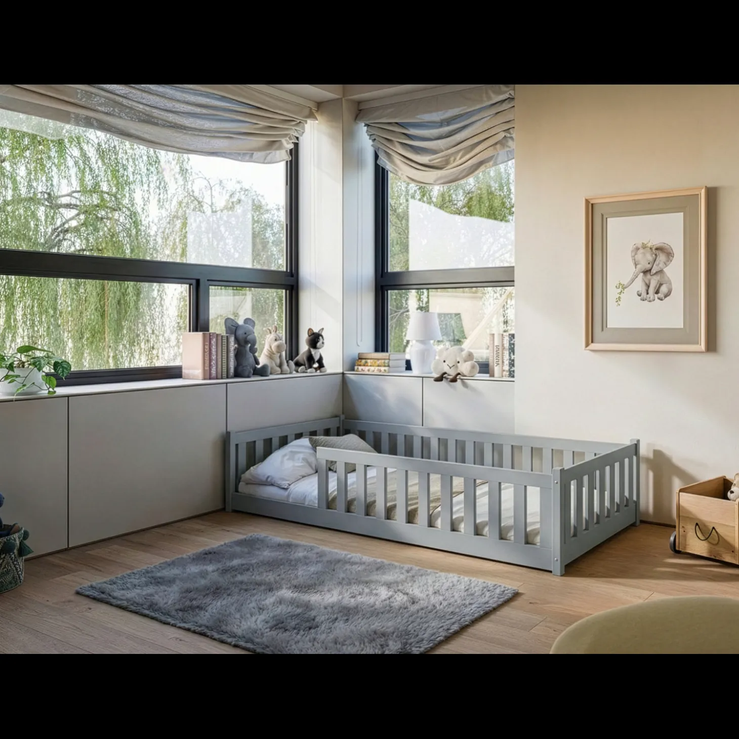 Vloerbed Owen is speciaal ontworpen met een laag instapontwerp, zodat kinderen zelfstandig en veilig in en uit bed kunnen stappen. Ideaal voor peuters en kleuters, doordat het dicht bij de vloer staat en geen valhoogte heeft.
