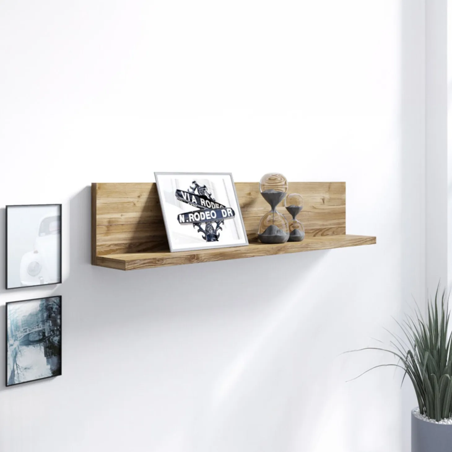 Dankzij het open ontwerp blijft de wand rustig, terwijl u eenvoudig sfeer toevoegt met accessoires of persoonlijke items. Deze wandplank is een praktische en stijlvolle toevoeging aan de woonkamer, slaapkamer of hal.