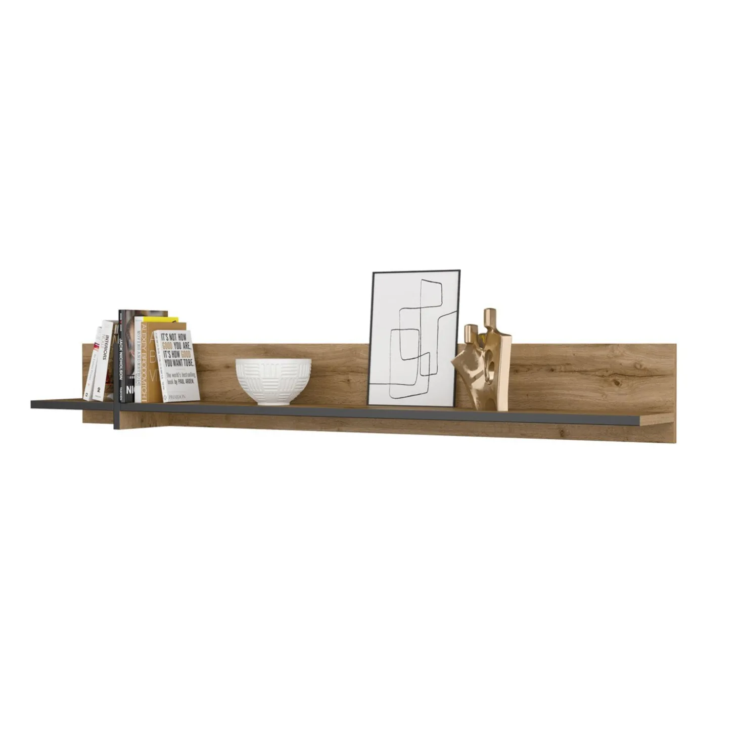 De wandplank Crotone heeft een strak en modern ontwerp met een minimalistische uitstraling. De combinatie van een lange plank en subtiele opstaande rand zorgt voor een praktische en stijlvolle plek om accessoires, boeken of decoratie neer te zetten.