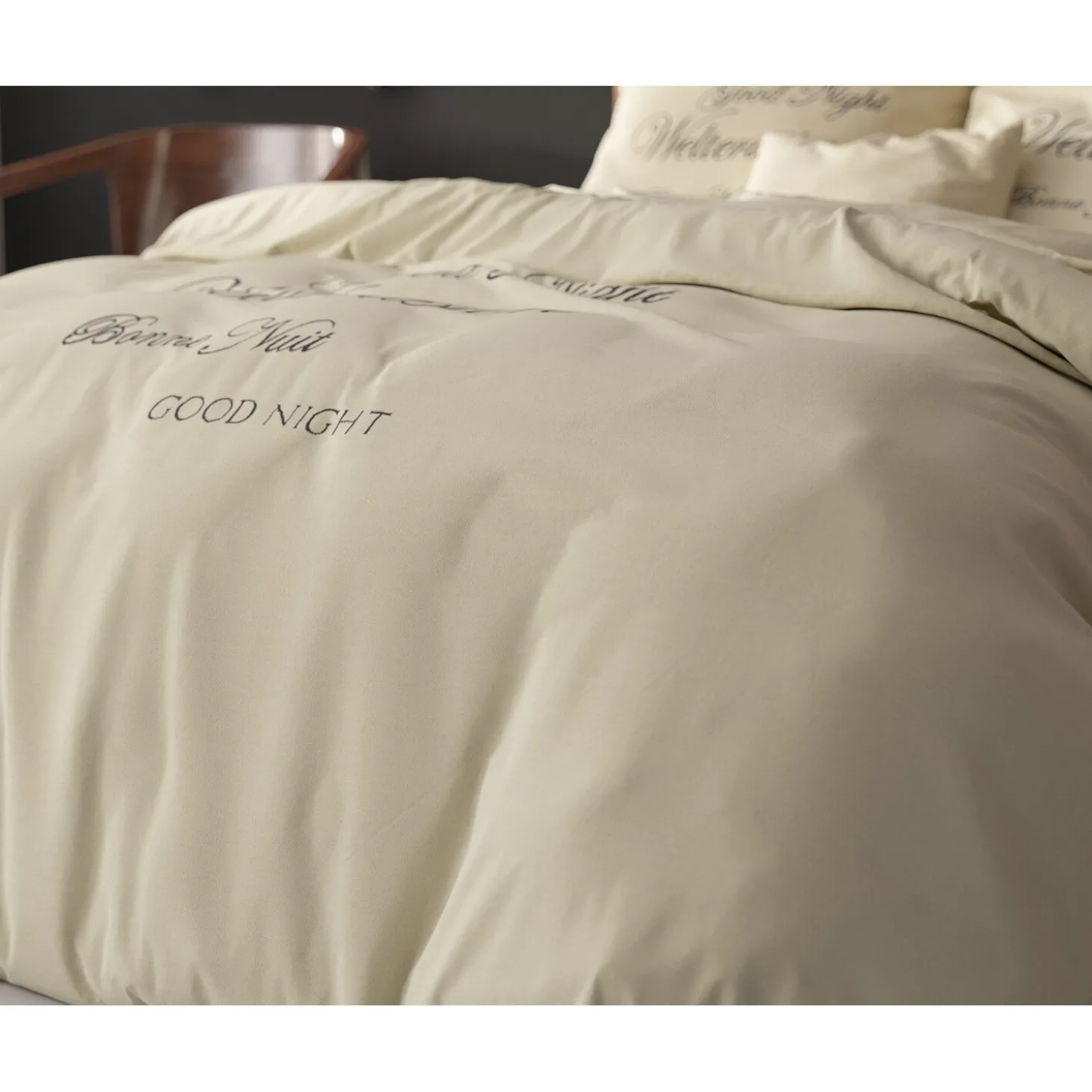 Word in stijl wakker en verfraai je slaapkamer met Welterusten, waar verfijnde esthetiek samensmelt met ongeëvenaard comfort. Deze tijdloze toevoeging aan je beddengoedcollectie biedt niet alleen een visueel feest met zijn haarscherpe digitale print, maar belooft ook een totale lengte van 220 cm, geschikt voor dekbedden van 200 en 220 cm lang.